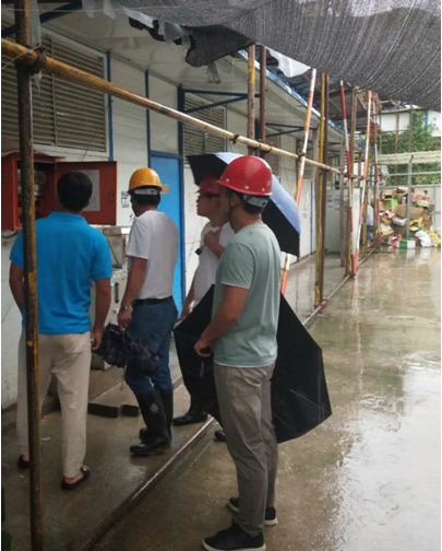 一是停止一切施工作業(yè),立即對施工現(xiàn)場的作業(yè)工人進行全部撤離,并將活動板房內(nèi)的人員全部疏散,同時和勞務(wù)班組核實撤離情況。二是組織項目部管理人員對施工現(xiàn)場的機械設(shè)備、臨時用電、安全防護棚、排水系統(tǒng)等和生活區(qū)活動板房進行全面隱患排查,立刻采取有效的防范措施,確保工地安全。三是密切監(jiān)視臺風動態(tài),安排值班人員處置突發(fā)情況。